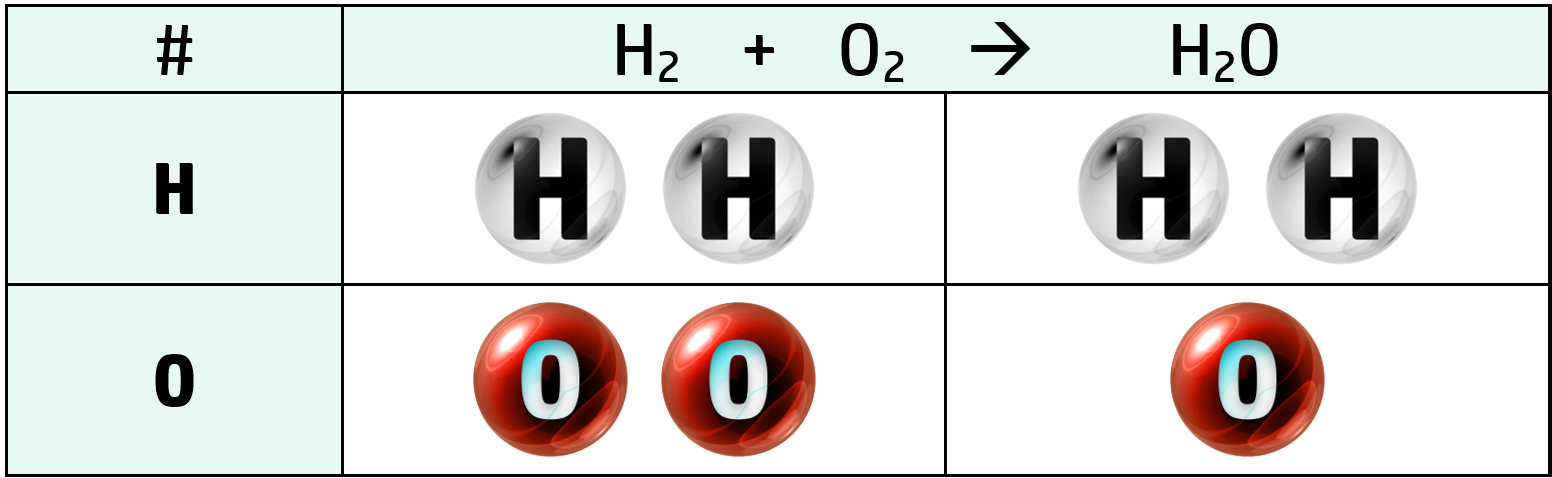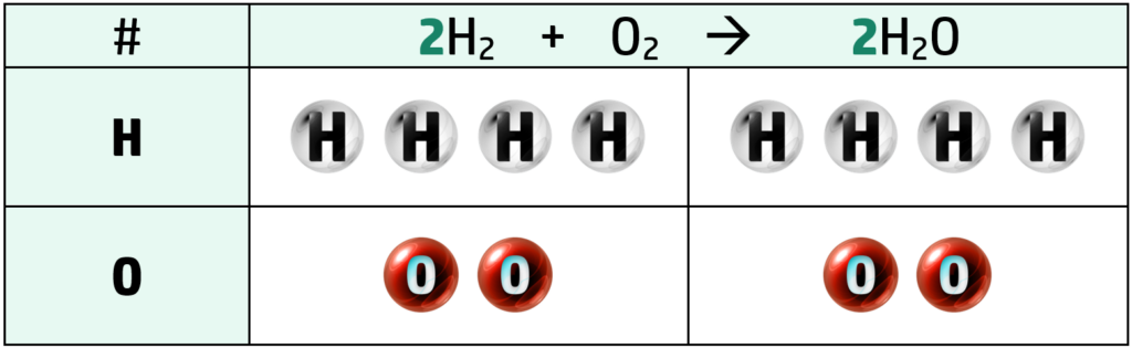 Balancing is all about making sure the number of each element is the same on both sides of the arrow.