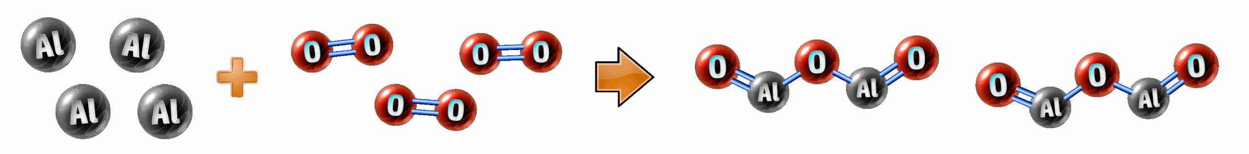 Step 3: Balance the equation (CH9): Start by doubling the aluminium oxide as this is the most complex substance and has an odd number in it. This gives us 4 aluminium's and 6 x oxygen’s, so 4Al and 3O2 balances the equation: