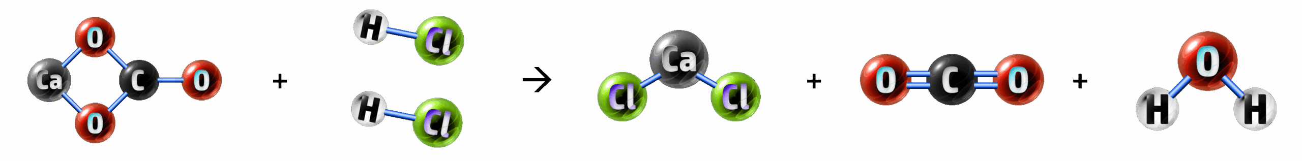 CaCO3 + 2HCl → CaCl2 + CO2 + H2O