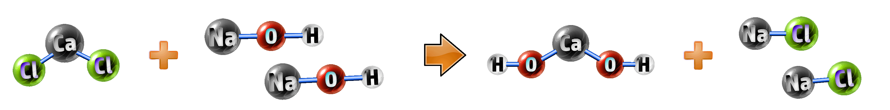 calcium chloride + sodium hydroxide → calcium hydroxide + sodium chloride