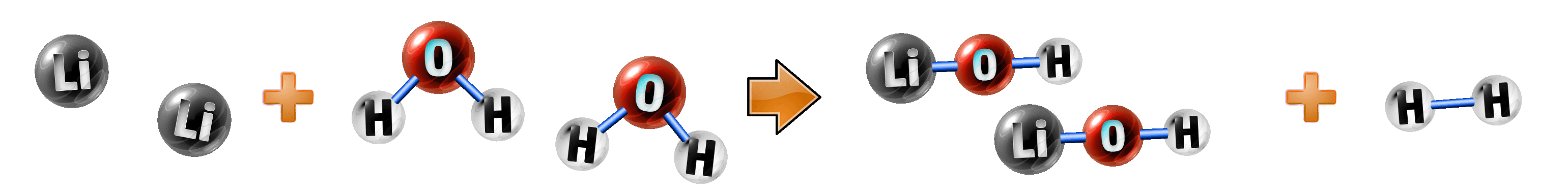 Lithium + Water → Lithium Hydroxide + Hydrogen