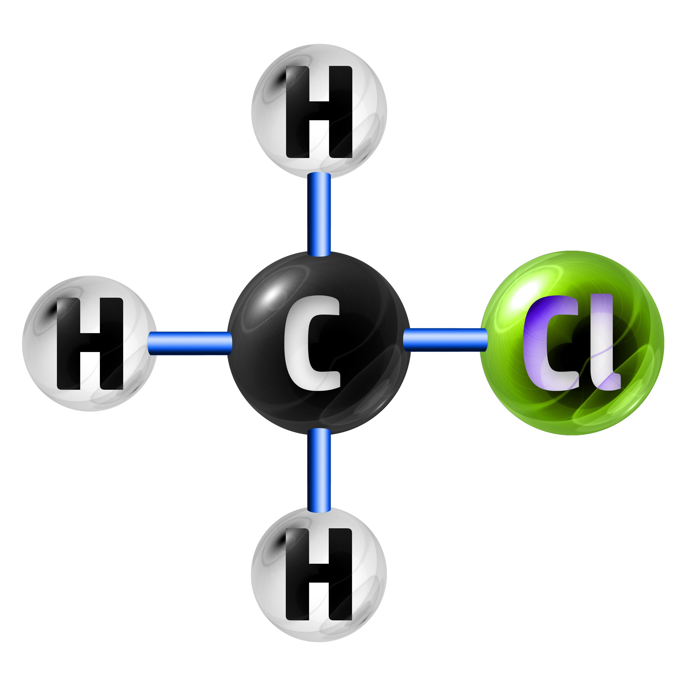 The formula CH3Cl shows me that I have 1 x C (carbon), 3 x H (hydrogen) and 1 x Cl (chlorine).