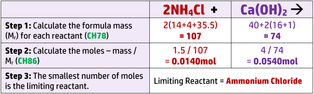 Work out the limiting reactant. (Ar: N = 14, H = 1, Cl = 35.5, Ca = 40, O = 16)
