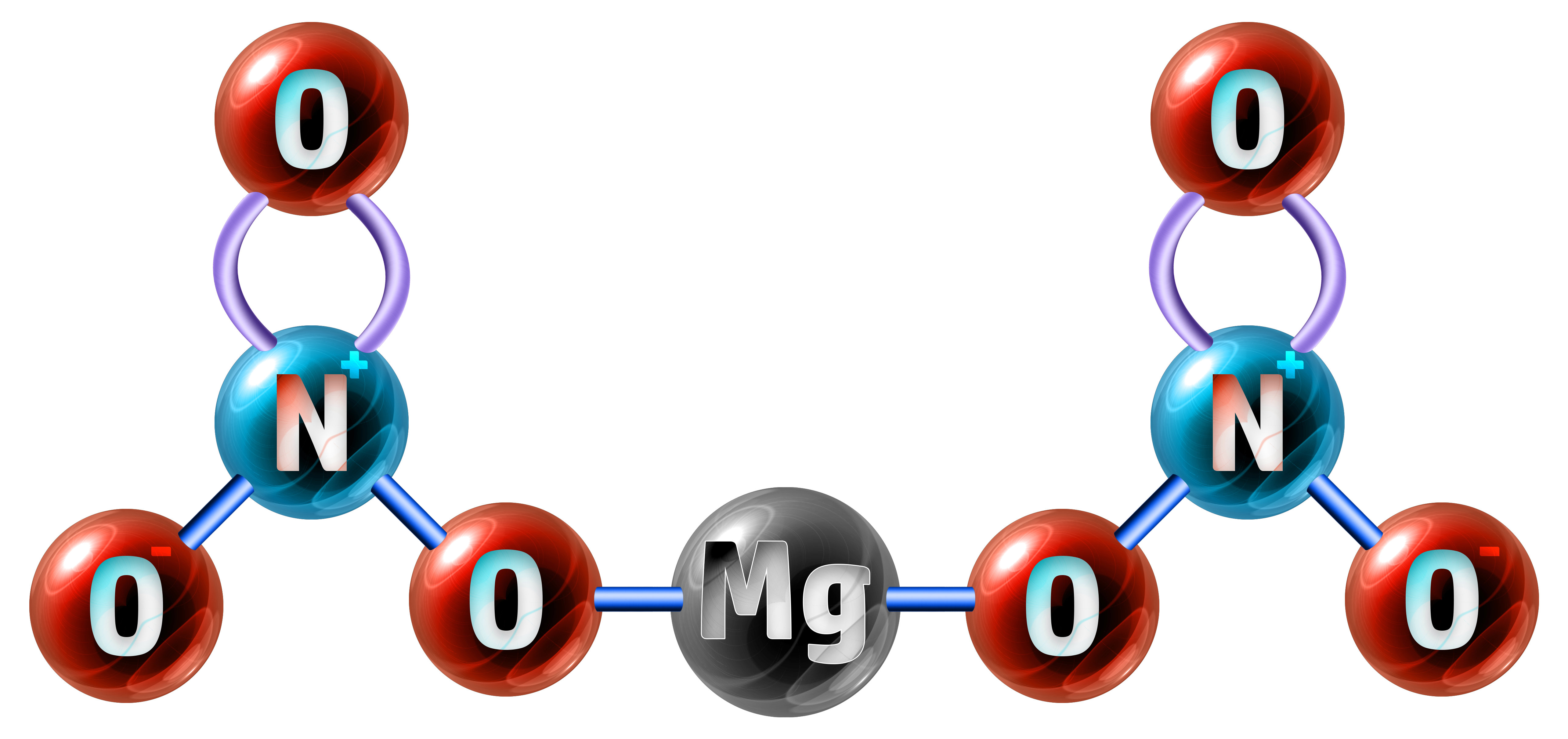 The formula Mg(NO3)2 shows me that I have 1 x Magnesium atom (Mg) connected to two lots of my nitrate ion (NO3), so I have 1x2 nitrogen’s and 3x2 oxygen’s: