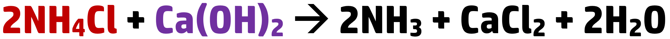 Example: 1.50g of ammonium chloride reacts with 4.0g of calcium hydroxide to form ammonia.