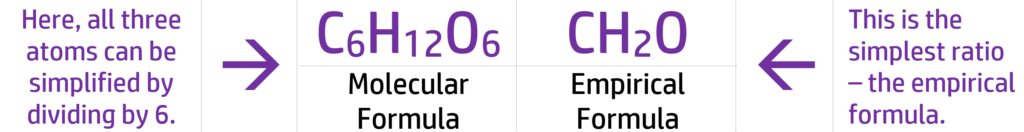 The Empirical formula is the simplest ratio of atoms in a compound: