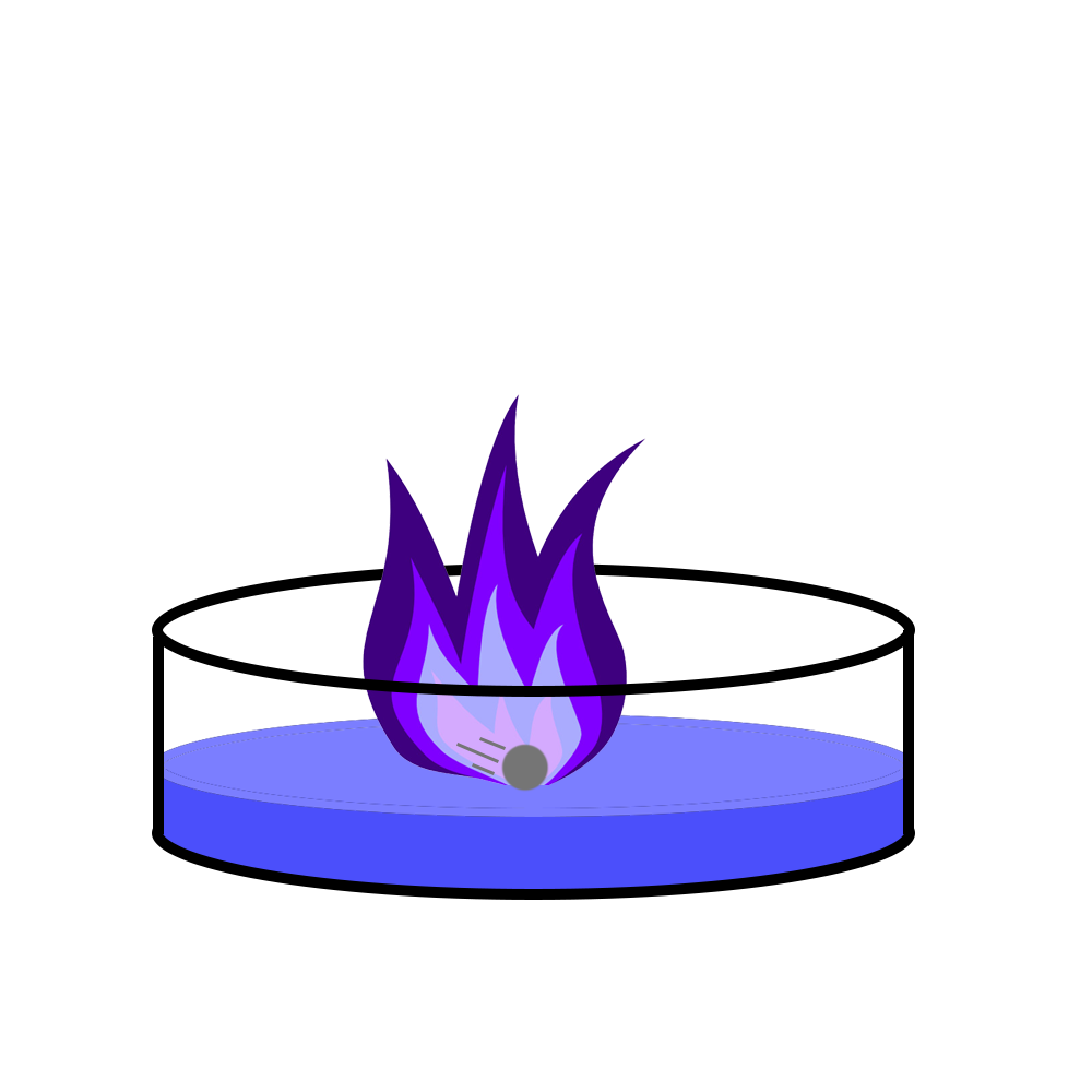 • Potassium fizzes the most, sets on fire with a lilac flame, and can explode.
