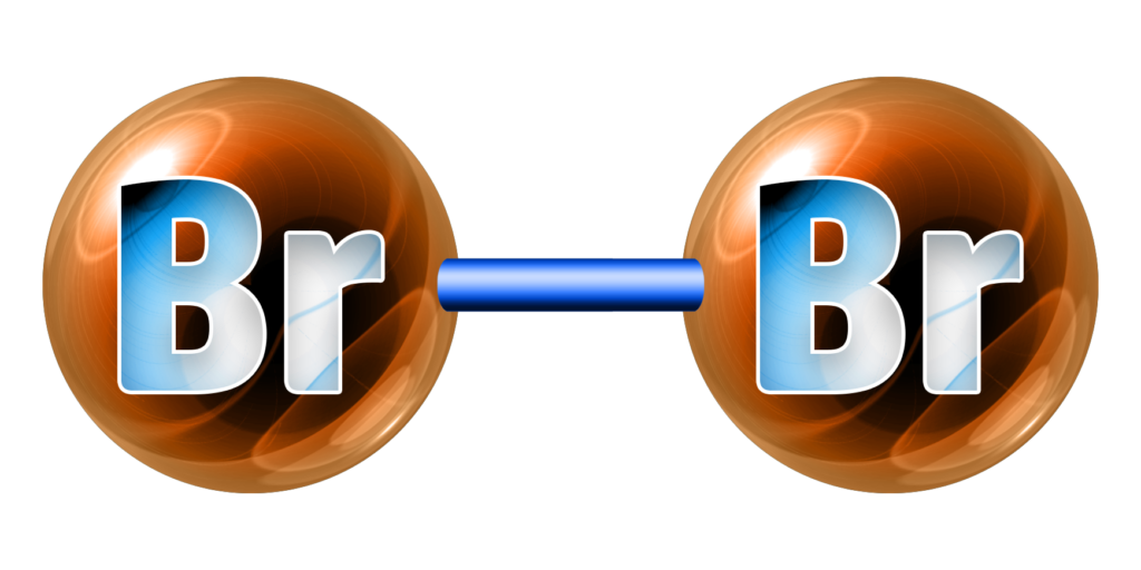 Bromine, Br2, is a red-brown liquid.