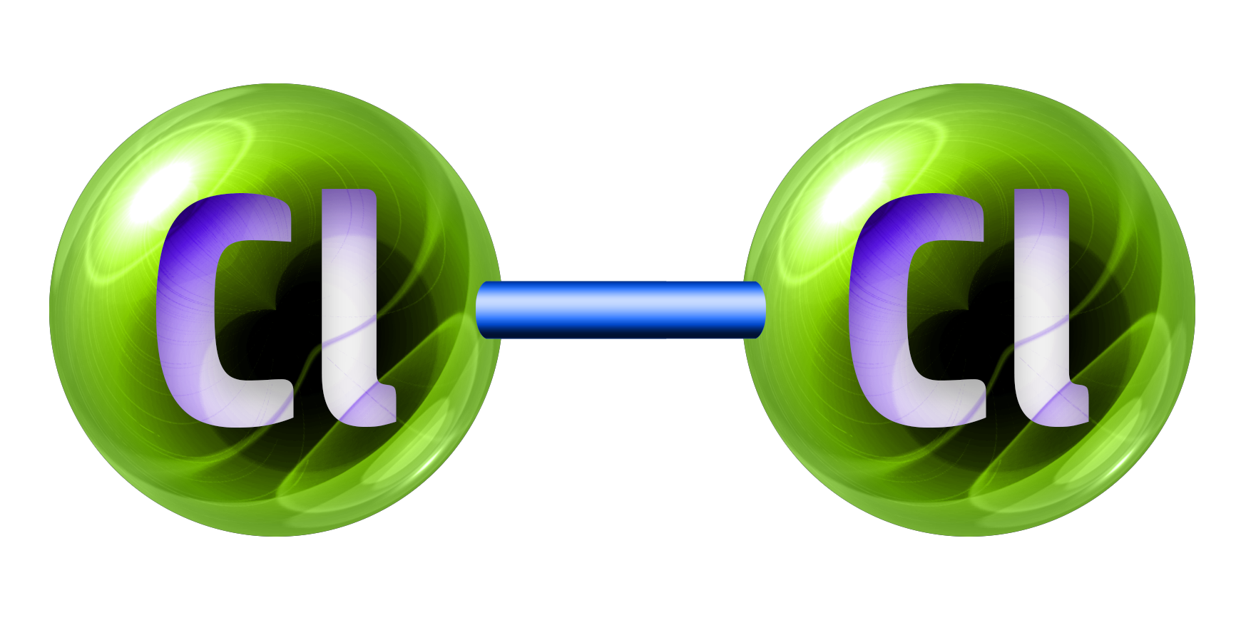 Chlorine, Cl2, is a green gas.