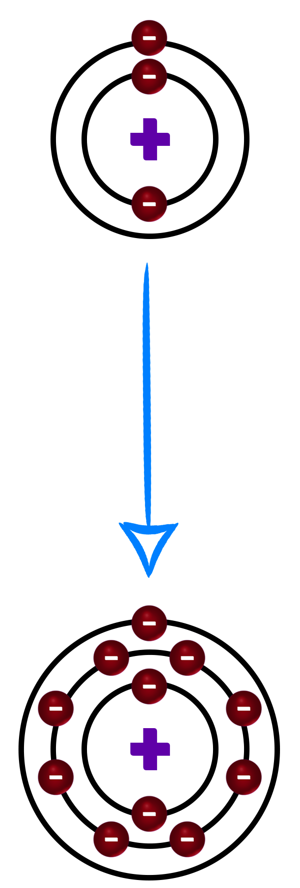 This means that they are unreactive – they don’t need to lose or gain any electrons to get a full outer shell.
