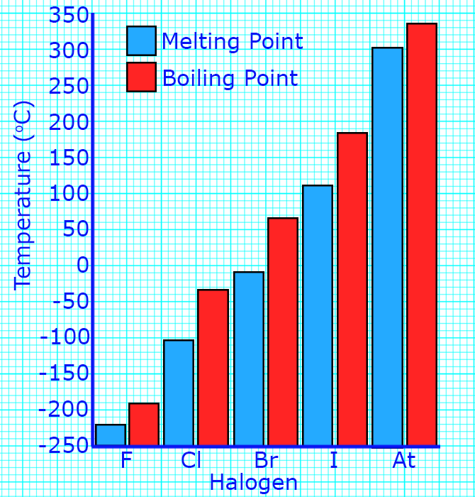 As you go down group 7, the melting points and boiling points increase.