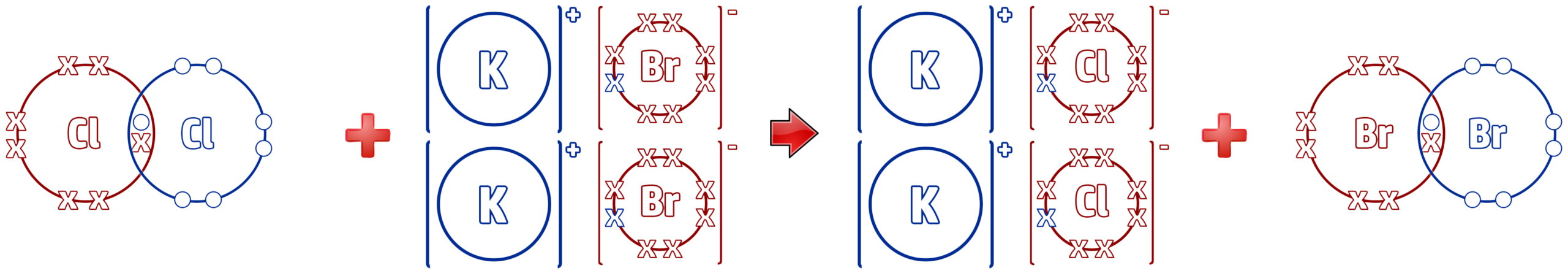Cl2 + 2KBr → 2KCl + Br2
