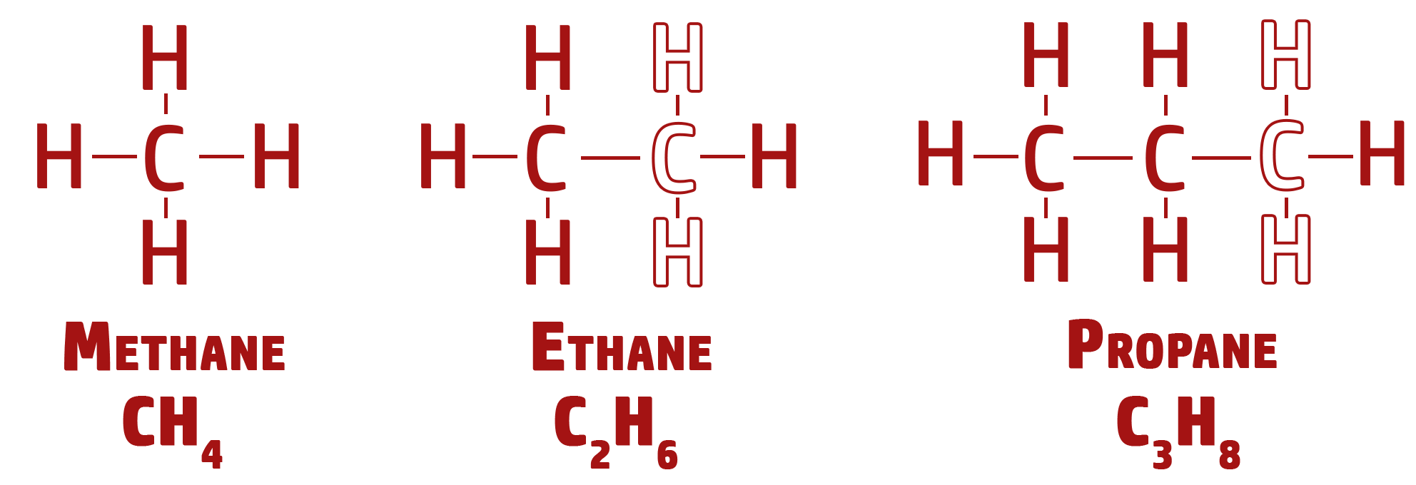 - This formula works by adding in a Carbon and 2 Hydrogens (CH2) each time.