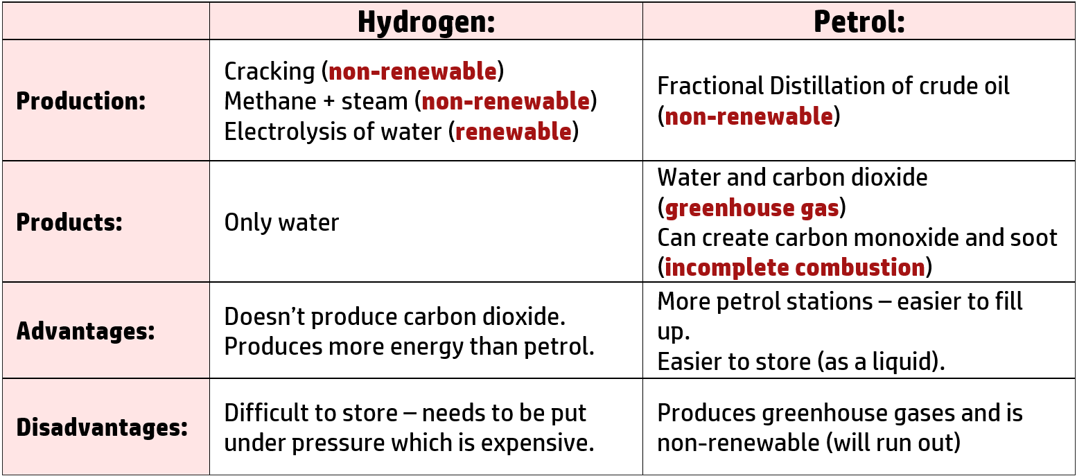 CH224: Evaluate using hydrogen as a fuel instead of petrol